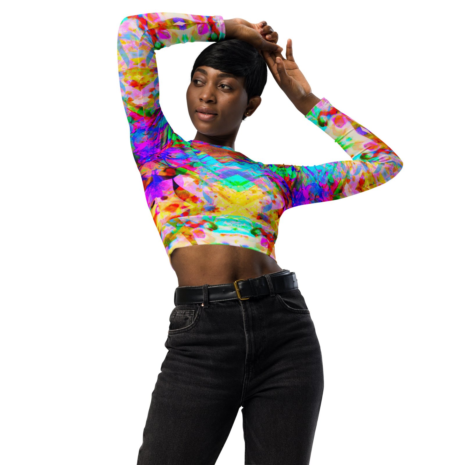 Ce haut à manches longues est fabriqué en polyester recyclé et en élasthanne, ce qui en fait un choix écologique pour la natation, le sport ou les tenues de sport. Le haut à manches longues a une étiquette d’entretien détachable et une large bande à double couche pour une coupe agréable.